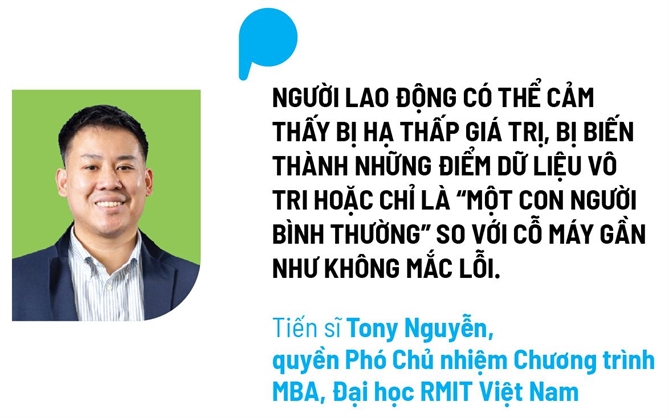 Đây không chỉ là vấn đề về hiệu suất, đó là một cuộc tấn công vào bản sắc nghề nghiệp. Tiến sĩ Tony Nguyễn, Đại học RMIT Việt Nam, nhận định rằng A.I đang buộc chúng ta phải đối mặt với câu hỏi hiện sinh: “Giá trị độc đáo tôi mang lại cho công việc này mà máy móc không thể sao chép là gì?”. Sự căng thẳng này không hề mơ hồ. Nó biểu hiện qua việc người lao động cảm thấy bị hạ thấp giá trị, bị biến thành những điểm dữ liệu vô tri hoặc đau đớn hơn, cảm thấy mình chỉ là “một con người bình thường” đầy lỗi lầm so với một cỗ máy hoàn hảo.