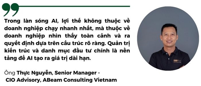Những con số này cho thấy AI không còn là xu hướng thử nghiệm, mà đã trở thành động lực tăng trưởng. Tuy nhiên, phía sau sự tăng tốc ấy là một bài toán phức tạp hơn nhiều: làm thế nào để ứng dụng AI mà không khiến hệ thống CNTT vốn đã phức tạp trở nên rối rắm và khó quản lý hơn? Buổi phỏng vấn nhanh cùng ông Thực Nguyễn, Senior Manager, CIO Advisory, ABeam Consulting Vietnam sẽ giải đáp các điểm nóng này.
