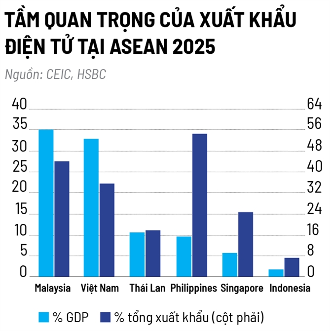 Theo báo cáo của HSBC, năm 2025 ghi nhận sự bùng nổ khi xuất khẩu điện tử của ASEAN tăng trưởng từ 15% đến 47%, vượt xa mức trung bình 10 năm. Trong cuộc đua này, không phải ai cũng ở cùng một vạch xuất phát.