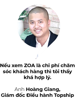 Nếu thất bại, khách hàng có thể khiếu nại trên ZOA để công ty rà soát lại. Điều này giúp giảm tỉ lệ giao hàng thất bại, từ đó tăng doanh thu cho cả công ty anh và chủ cửa hàng. “Nếu xem ZOA là chi phí chăm sóc khách hàng thì tôi thấy khá hợp lý”, anh Giang nói.