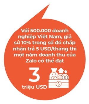 Con đường của Zalo có vẻ đã rõ ràng hơn. Với 500.000 doanh nghiệp Việt Nam, giả sử 10% trong số đó chấp nhận trả 5 USD/tháng thì một năm doanh thu của Zalo có thể đạt 3 triệu USD.