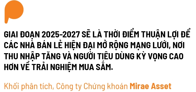 “Dù kênh truyền thống vẫn chiếm ưu thế, xu hướng chuyển dịch này cho thấy giai đoạn 2025-2027 sẽ là thời điểm thuận lợi để các nhà bán lẻ hiện đại mở rộng mạng lưới, nơi thu nhập tăng và người tiêu dùng kỳ vọng cao hơn về trải nghiệm mua sắm”, Mirae Asset nhận định.