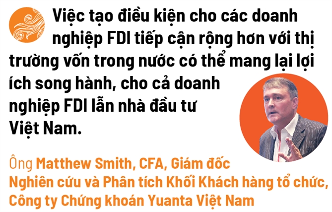 Bên cạnh đó, việc cho phép các doanh nghiệp FDI phát hành trái phiếu hoặc IPO tại thị trường nội địa sẽ tạo ra cú hích kép. Ông Matthew Smith tin rằng: “Việc hoàn thiện khuôn khổ để các doanh nghiệp này có thể huy động vốn thông qua phát hành trái phiếu hoặc IPO trong nước sẽ là một bước tiến tích cực... Đây sẽ là một chủ đề trọng tâm của thị trường Việt Nam trong những năm tới”.