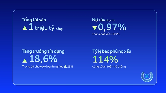 Song song đó, ngân hàng duy trì kỷ luật chặt chẽ trong quản trị thanh khoản và an toàn vốn. Tỷ lệ vốn ngắn hạn cho vay trung - dài hạn ở mức 24,4%, thấp hơn đáng kể so với ngưỡng quy định. Tỷ lệ dư nợ cho vay so với tổng tiền gửi (LDR) duy trì ở mức 79%, đảm bảo dư địa tăng trưởng tín dụng bền vững. Việc chuyển đổi sang Thông tư 14 từ tháng 12/2025 giúp tỷ lệ an toàn vốn (CAR) hợp nhất dự kiến trên 12%, cao hơn đáng kể so với yêu cầu tối thiểu.