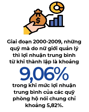 Kết quả là họ sẽ giao dịch ít hơn, đầu tư sẽ ít mạo hiểm hơn. Với những quỹ phòng hộ và những quỹ mà thường là đầu tư mang tính rủi ro cao hơn thì kết quả của nữ giới thường tốt hơn hẳn so với nam giới. Ví dụ như kết quả đầu tư từ năm 2000 đến 2009 chẳng hạn, những quỹ mà do nữ giới quản lý thì lợi nhuận trung bình từ khi thành lập là khoảng 9,06% trong khi mức lợi nhuận trung bình của các quỹ phòng hộ nói chung chỉ khoảng 5,82 %.